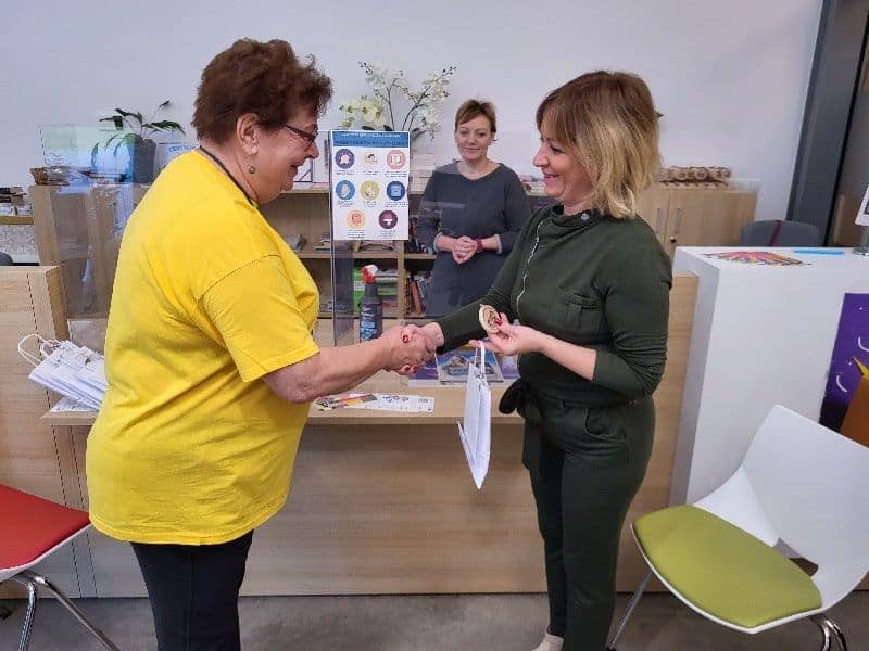 Klub Kolekcjonerów Znaczków Turystycznych, który właśnie obchodzi sześciolecie istnienia, promował najnowszy znaczek w Bibliotece Gminnej w poniedziałkowy poranek, czekając na pierwszych pięciu nabywców. Jako pierwsza zgłosiła się po niego Izabela Frąckowiak, mieszkająca w Szreniawie, więc zainteresowana tym terenem, znana z dużej społecznej aktywności.